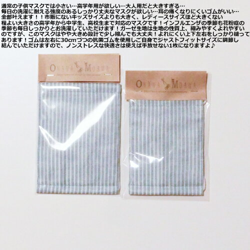 マスク 子供 ガーゼ 給食当番【高学年 中学校 高校 大きめ】【3枚以上で送料無料】北欧テイスト デニム風 ボーダー ドット メッセージカード 6重ガーゼPM2.5 花粉対策 通学 小学校【日本製 おしゃれ 女子 男子 ジュニアマスク】抗菌ゴム【あす楽】