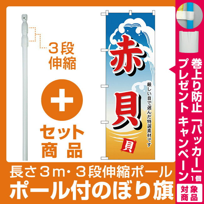 【セット商品】3m・3段伸縮のぼりポール(竿)付 のぼり旗 赤貝 (H-1176)(寿司・海鮮/貝類(ホタテ・サザエ・アワビ、カキ))(貝類(ホタテ・サザエ・アワビ、カキ))(貝類(ホタテ・サザエ・アワビ、カキ))
