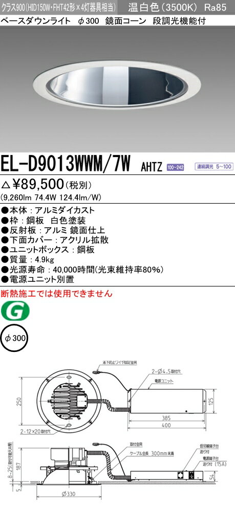 【最安値挑戦中!最大34倍】三菱 EL-D9013WWM/7WAHTZ LEDダウンライト 拡散シリーズ 一般用途 段調光機能付調光5〜100% 温白色 φ300 電源ユニット別置 受注生産品 [∽§]
