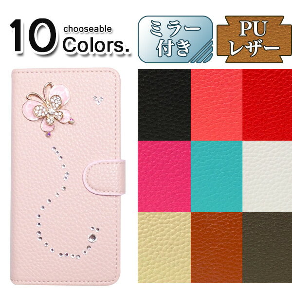 【[ミラー付き] HTC HTC J One HTL22 au 専用 手帳型スマホケース 横開き デコ キラキラ ピンク蝶々(DB512W02)】[返品・交換・キャンセル不可]